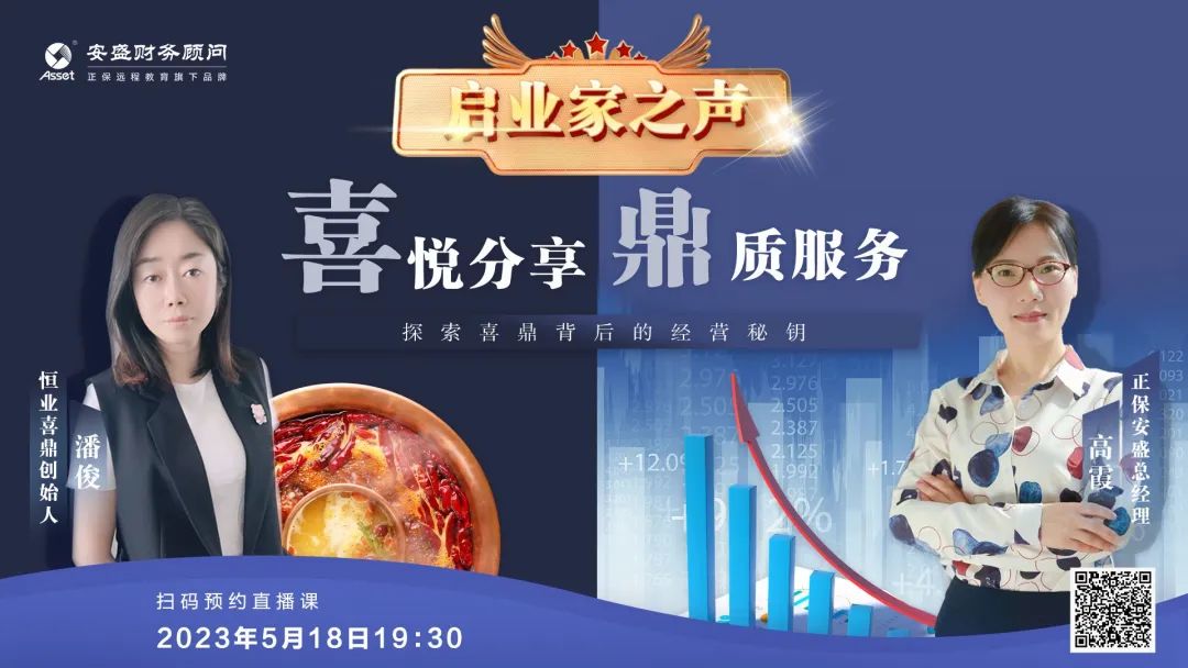 5月18日19:30,安盛推出《啟業(yè)家之聲》第一期,由安盛總經(jīng)理高霞女士和“喜鼎連鎖火鍋”品牌創(chuàng)始人潘俊女士親臨對話,帶來《喜悅分享 鼎質(zhì)服務(wù),探索喜鼎背后的經(jīng)營秘鑰》主題訪談。本次直播采用訪談對話的形式,讓大家在輕松的聊天中了解喜鼎的制勝法寶,在經(jīng)驗(yàn)交流中學(xué)習(xí)企業(yè)的經(jīng)營之法,在全程多輪抽獎中感受活動的喜悅和熱情,活動得到大家的一致好評。